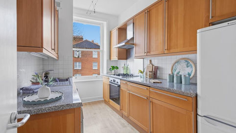 The property has a bright open plan kitchen living room, with two large double bedrooms, on a quiet residential street close to Parsons Green.